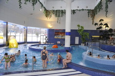 Velký bazén, dětský bazén, brouzdaliště, 2 tobogány, výřivka, sauna, masáže