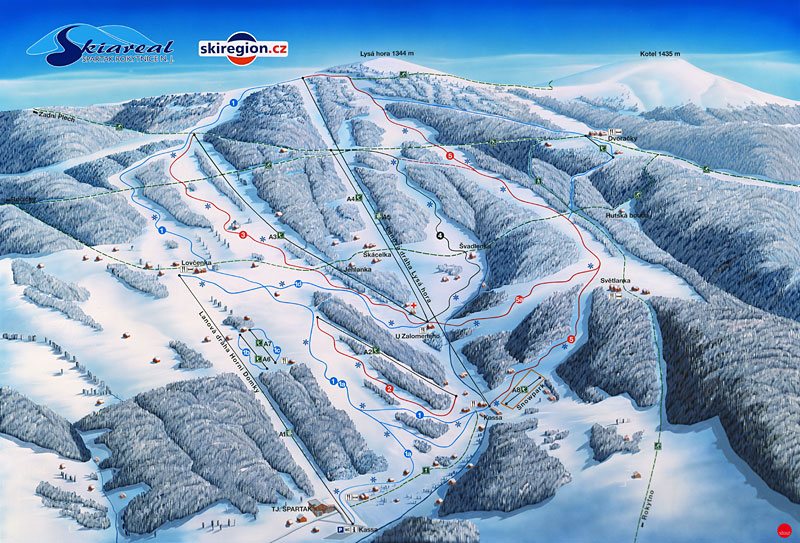 Turistická (2920m), Přibližovák (1355m), Kaprun I (342m), Kaprun II (342m), Padák (264m), Křížek (485m), Slalomák (963m), Červená FIS (2543m), Dědek (344m), Dřevařská (962m), Spojovací (205m), Snowpark (185m), Svážná (269m), Bufetová (464m), Dojezdová (1463m), Divoká (740m), Prudká (383m), Modrá (1347m), Modrá 500 (661m), Modrá 200 (216m), Červená (1324m)